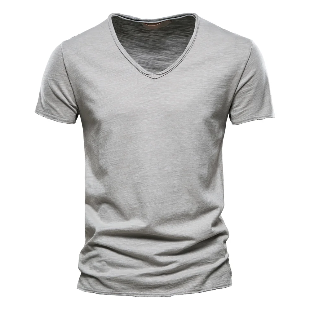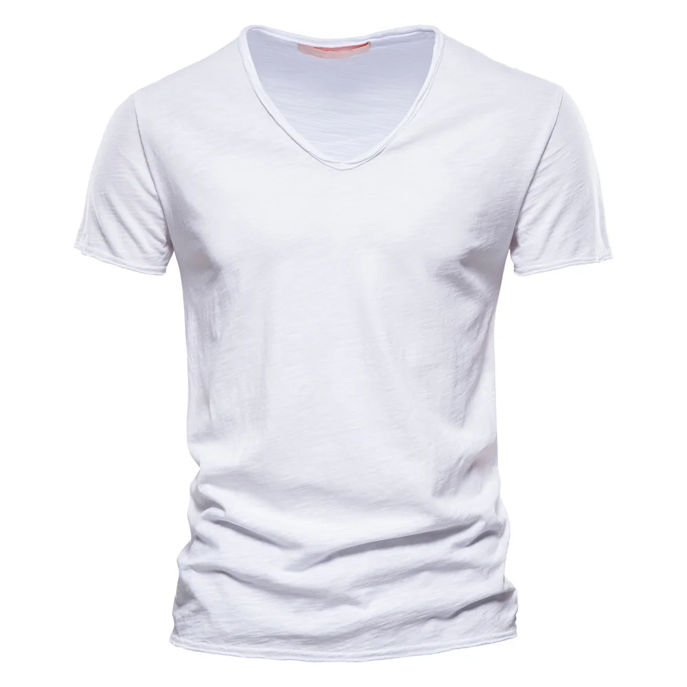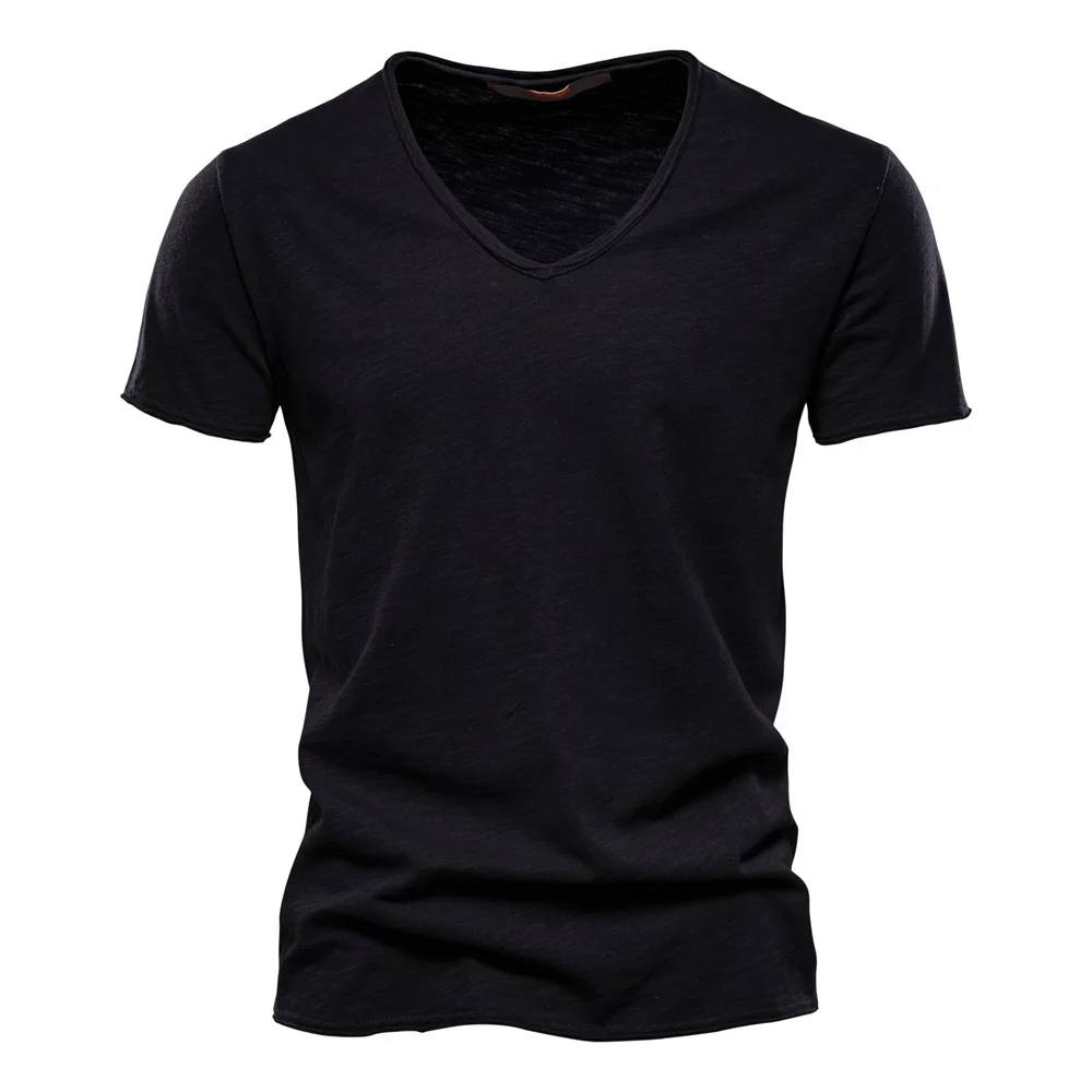 Brand Quality 100% Cotton Men T-shirt V-neck Fashion Design Slim Fit Soild T-shirts Male Tops Tees Short Sleeve T Shirt For Men